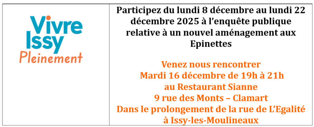 […] 16 décembre 2025 de 19h à 21h au restaurant SIANNE : les détails sur notre site dans cet article https://vivreissypleinement.fr/renovation-du-centre-commercial-des-epinettes-reunion-vip-le-16-decem…, VENEZ NOMBREUX […]